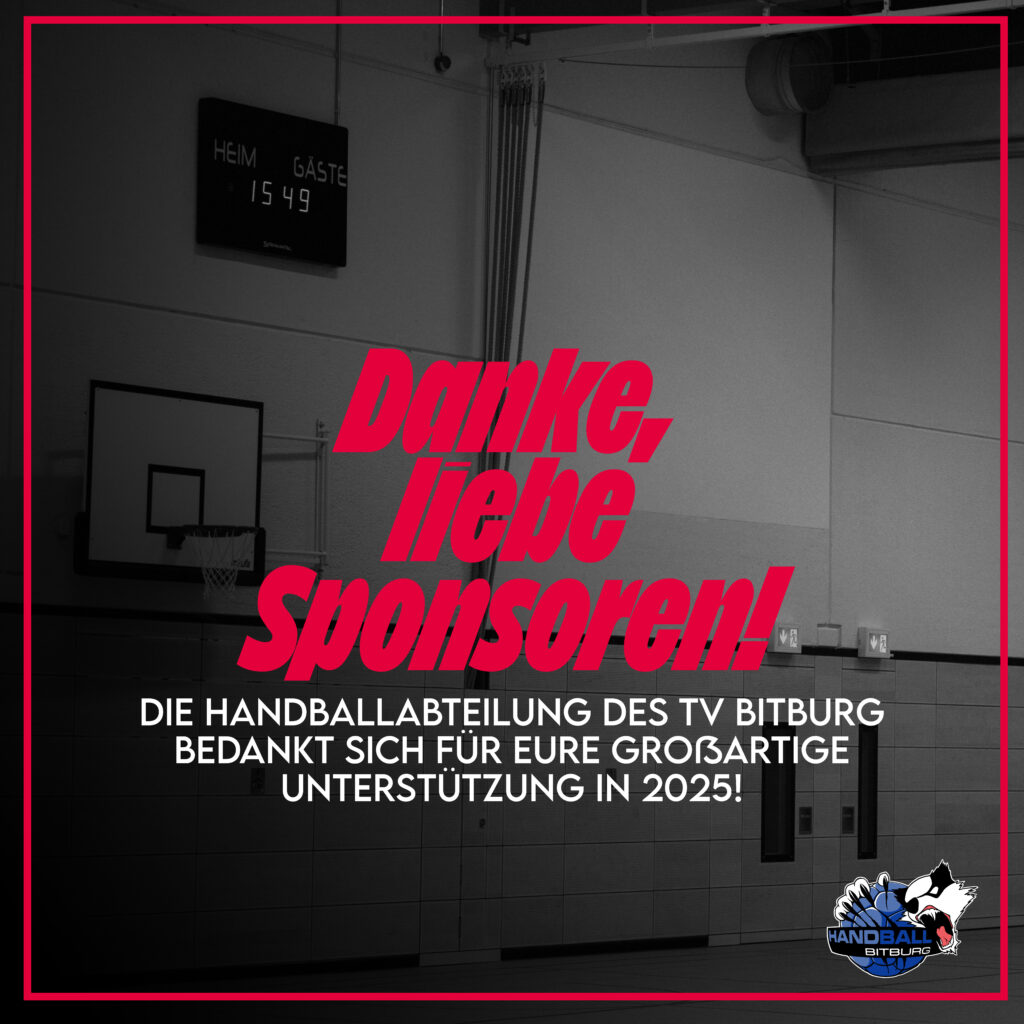 Danke, liebe Sponsoren! Die Handballabteilung des TV Bitburg bedankt sich für Eure großartige Unterstützung im Jahr 2025! Ohne Euer Engagement wäre der Handball in Bitburg nicht möglich! #nurderTVB